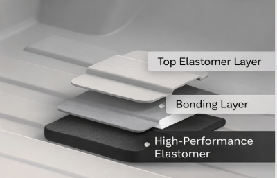 Top Layer: Elastomer Engineered to Match Vehicle Interior Aesthetics.
